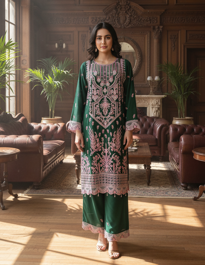 3 piece stitched embroidered chiffon suit